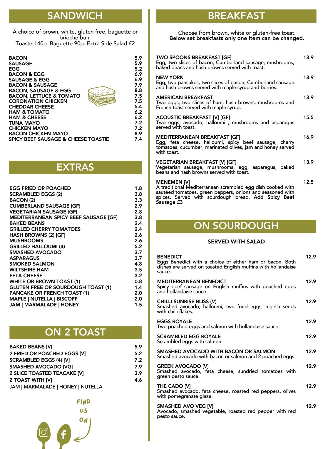 Two Spoons is a newly established restaurant and bar based in Fleet. The menu consists of a tantalising selection of breakfast, brunch, steaks, and pastas. The food menu is accompanied by a range of alcoholic and non-alcoholic drinks, including coffees, teas, soft drinks, smoothies, milkshakes, cocktails, beers, liquors, wines, and spirits.